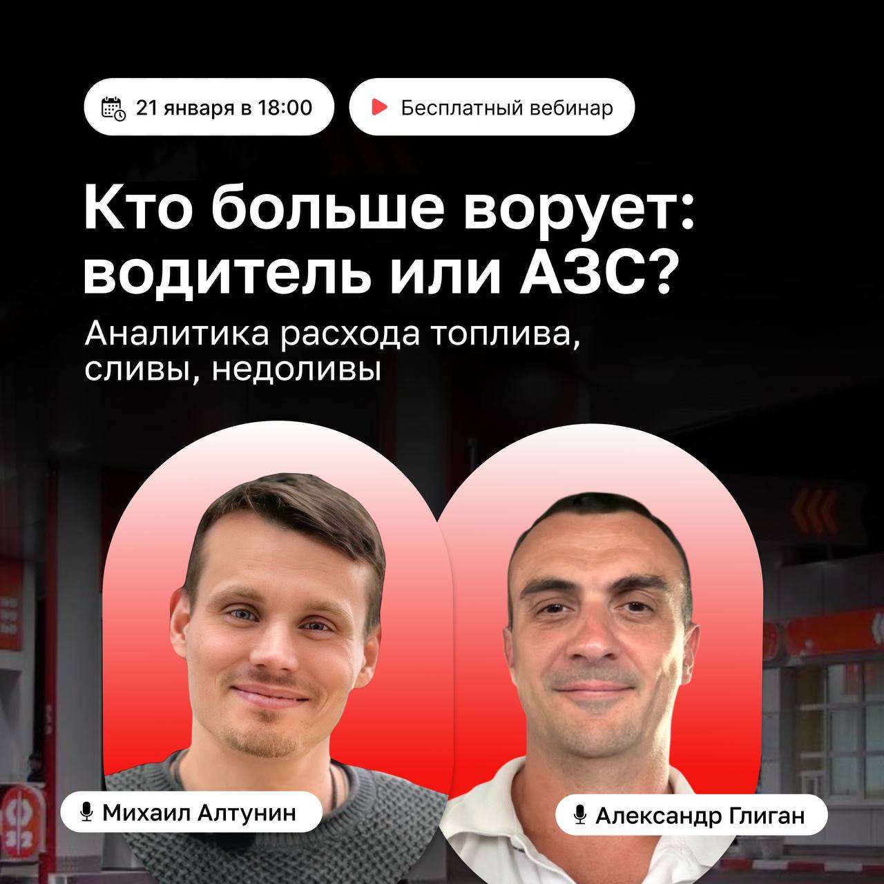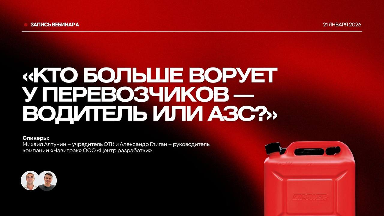 21 января в 18:00 МСК присоединяйтесь к вебинару «Кто больше ворует: водитель или АЗС?», чтобы понять, как контролировать расход топлива и выявлять недоливы и сливы.