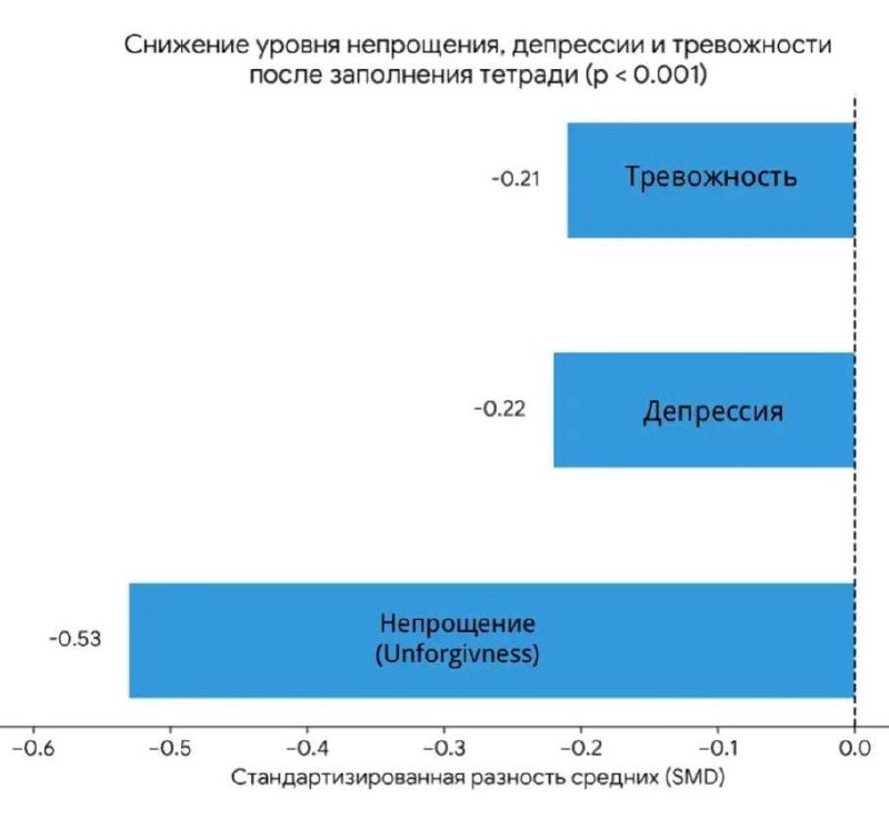 Интересно, что в экспериментах людям, которые просто фиксировали шаги по REACH в обычном блокноте - удавалось заметно снизить тревогу и депрессию, а в исследованиях среди более 200 000 человек оказалось, что люди, которые прощают чаще, живут психологически более спокойно и комфортно.