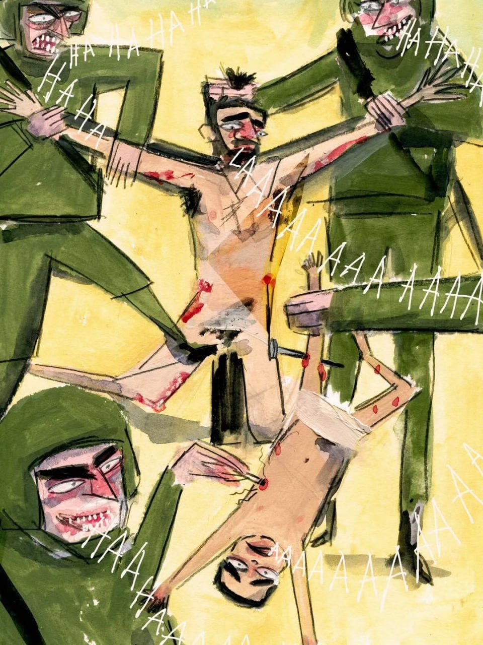 Қийноққа солинган, хочга михланган ва олиб кетилган — кичик Карим, ҳали 18 ойга ҳам тўлмаган эди. У отаси Осама кўз ўнгида қийноққа солинган. Осама яланғоч ҳолда ечинтирилиб, ўзининг севимли ўғли қандай азобланаётганини мажбуран томоша қилишга мажбур қилинган. Карим 10 соат давомида сигарета билан куйдиришга дучор қилинган ва танаси темир мих билан тешилган, ҳатто бир пайт мих унинг оёғидан ўтказиб юборилган.