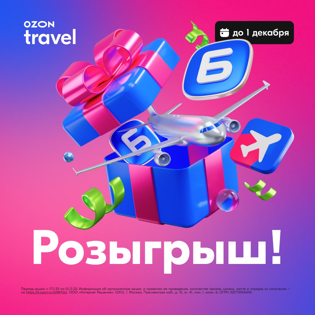 🎁 1 место — промокод на 30 000 ₽ для бронирования любых авиабилетов на Ozon Travel. Вылет до 31 декабря.