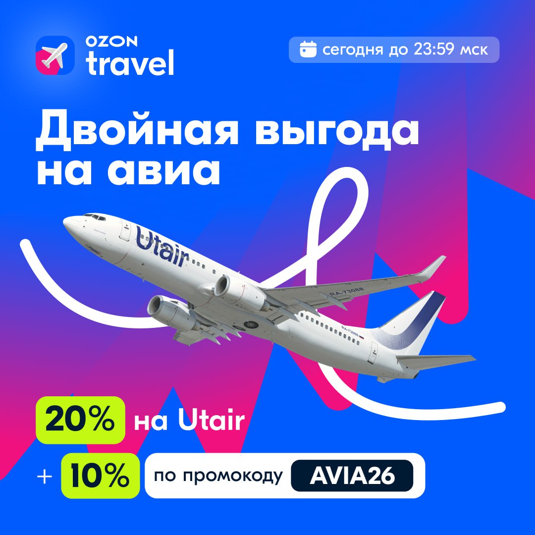 ⚡️Скидка⚠️⚠️по промокоду AVIA26 на все перелеты +⚠️⚠️на авиа Utair по акции⚡️