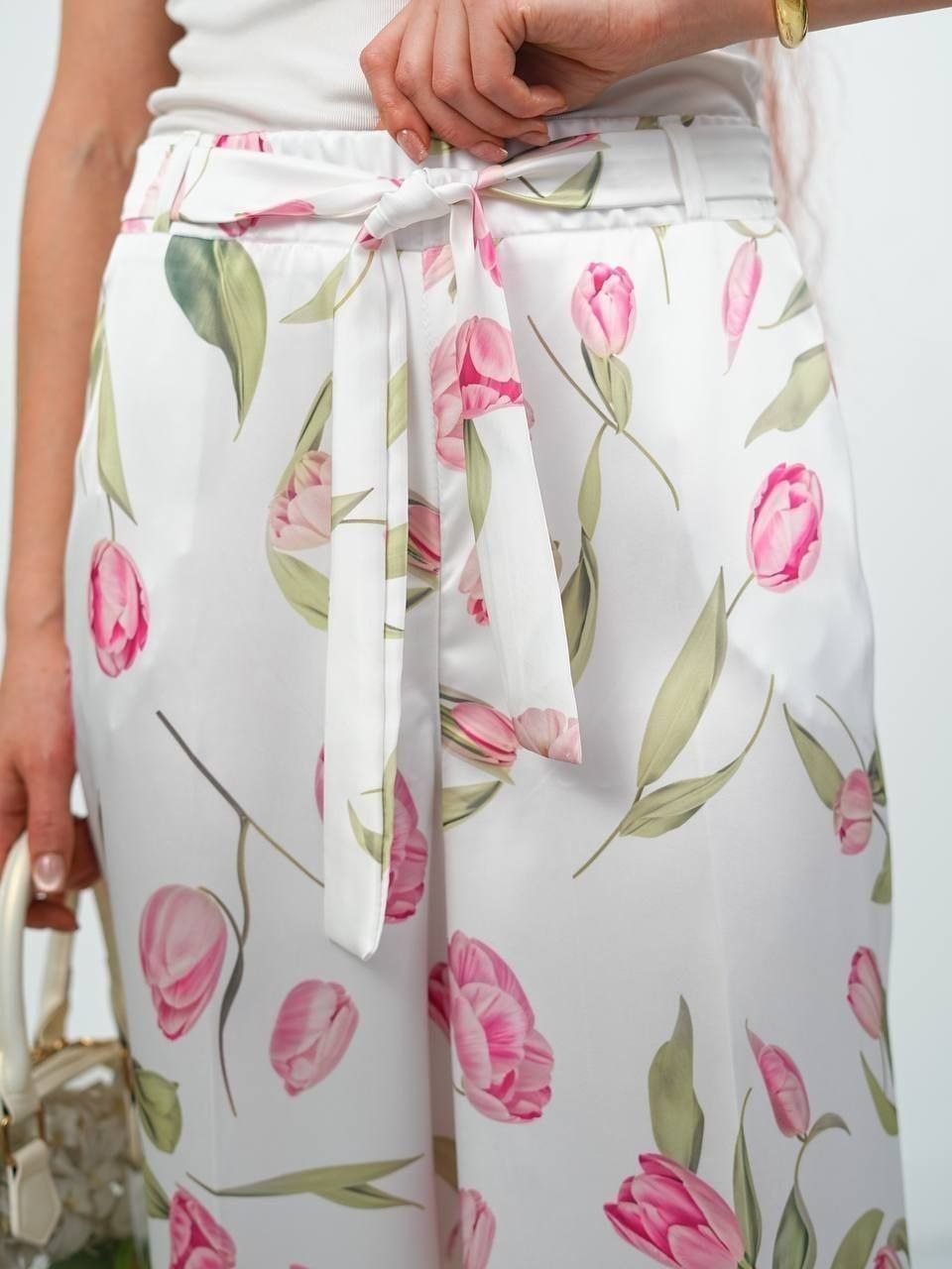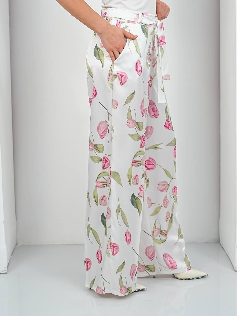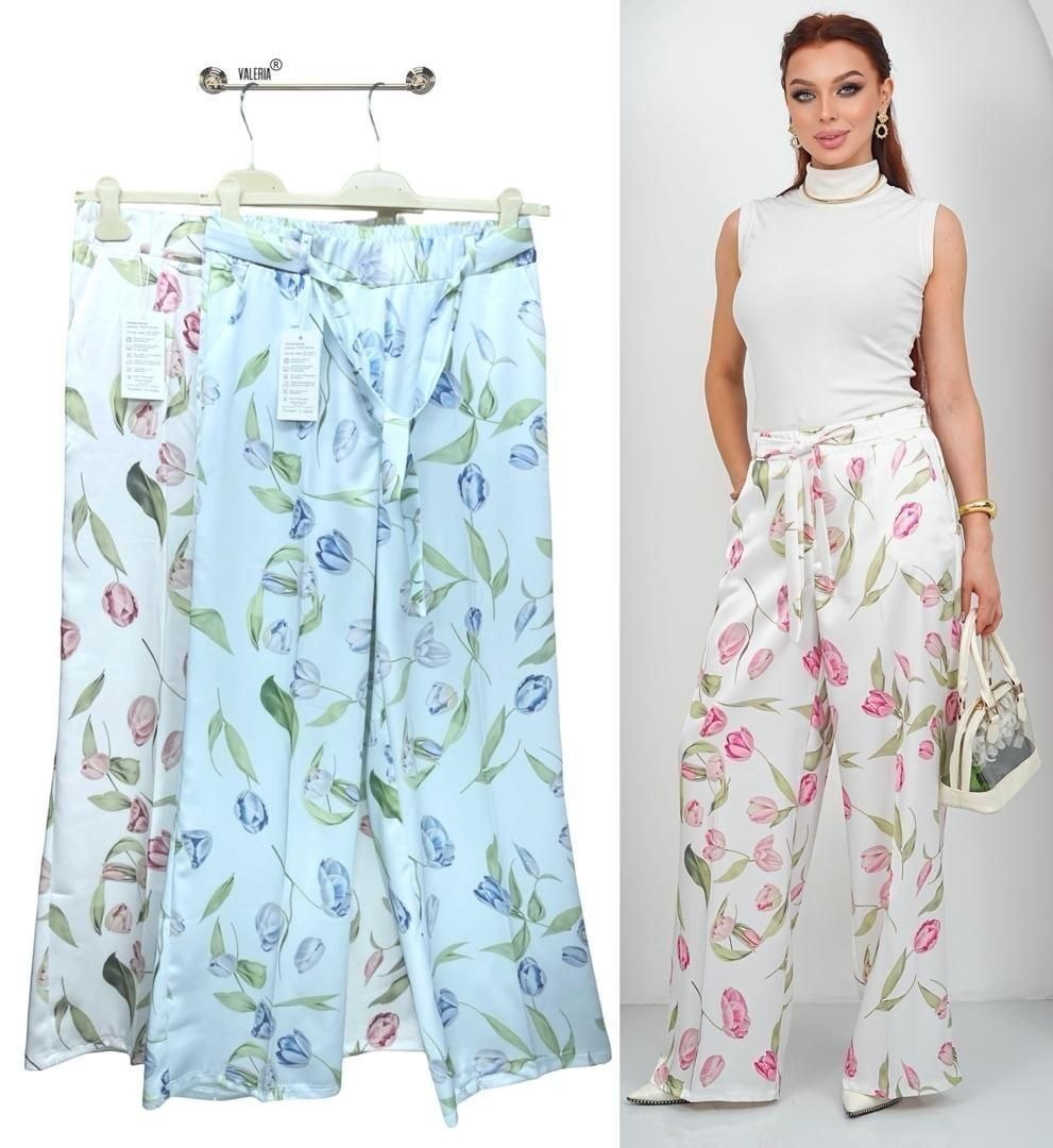 Широкие брюки кюлоты на лето, ткань - тонкий шёлк атлас с абстракцией,