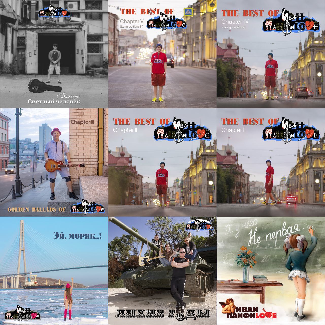 Ну, и финальный EP «Светлый Человек», состоящий из пяти баллад. Итого мы имеем 7 альбомов, один из которых мини альбом. 69 (!) качественно записанных песен. Пока, так. Возможно будет, иначе. Возможно. Но даже если всё останется без изменений, я полагаю это колоссальный вклад в рок-музыку с тихоокеанского побережья. Made in Vladivostok.
