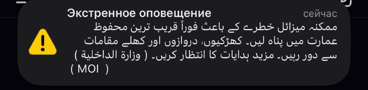 Мы даже с Сашей поехали в теннис играть, но сейчас чёт прям много подряд сработало пво, сбивали ракеты + всем на телефон пришло уведомление от правительства ОАЭ, где написано, что нужно зайти в здание, держаться подальше от окон и следовать дальнейшим указаниям
