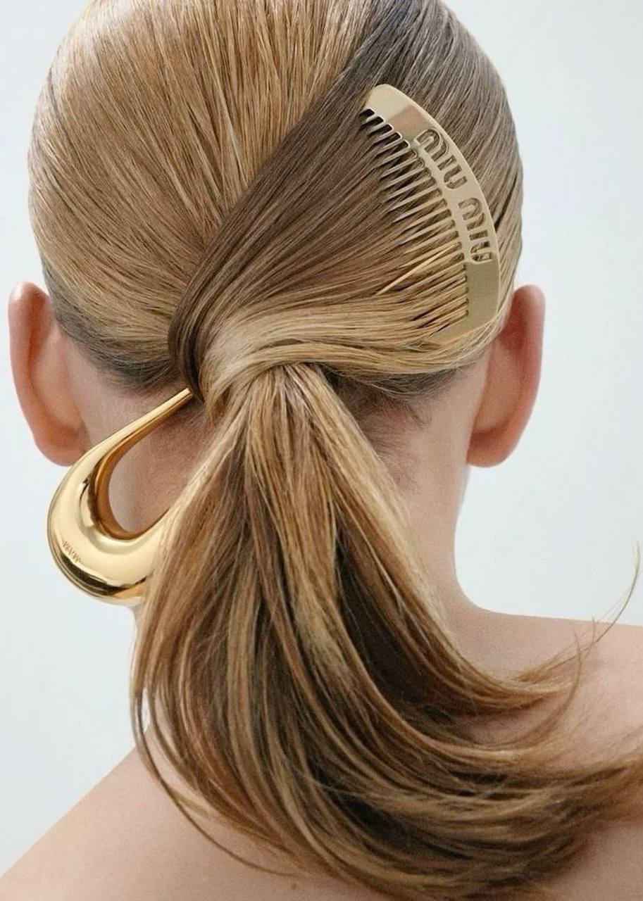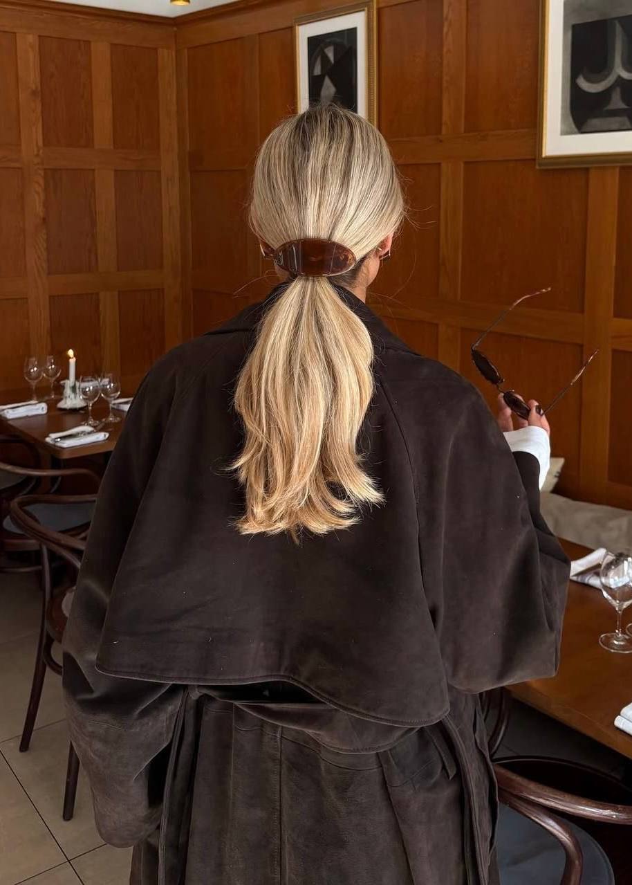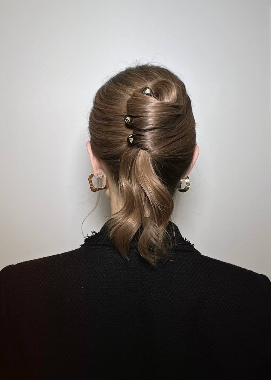✨ Самое легкое – красивая заколка на слегка «месси» хвост.