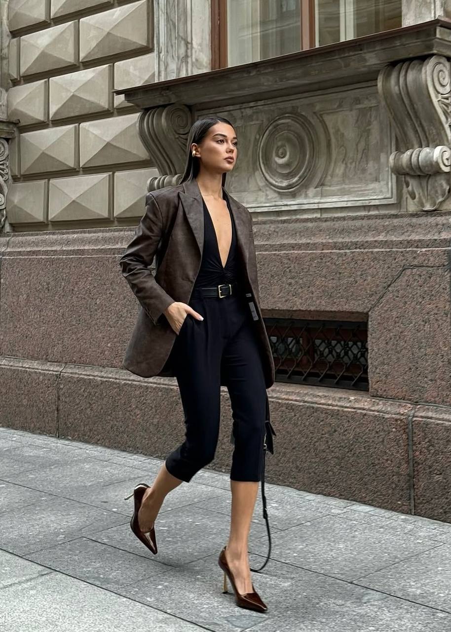 Есть убеждение, что капри подходят только высоким, стройным и длинноногим, как бы не так! Вот вам легкий стилистический трючок, который поможет визуально удлинить ноги, если боитесь, что капри их «обрежут». Обувь с острым мысом — все! А если еще каблук добавить, то ноги станут километровыми.
