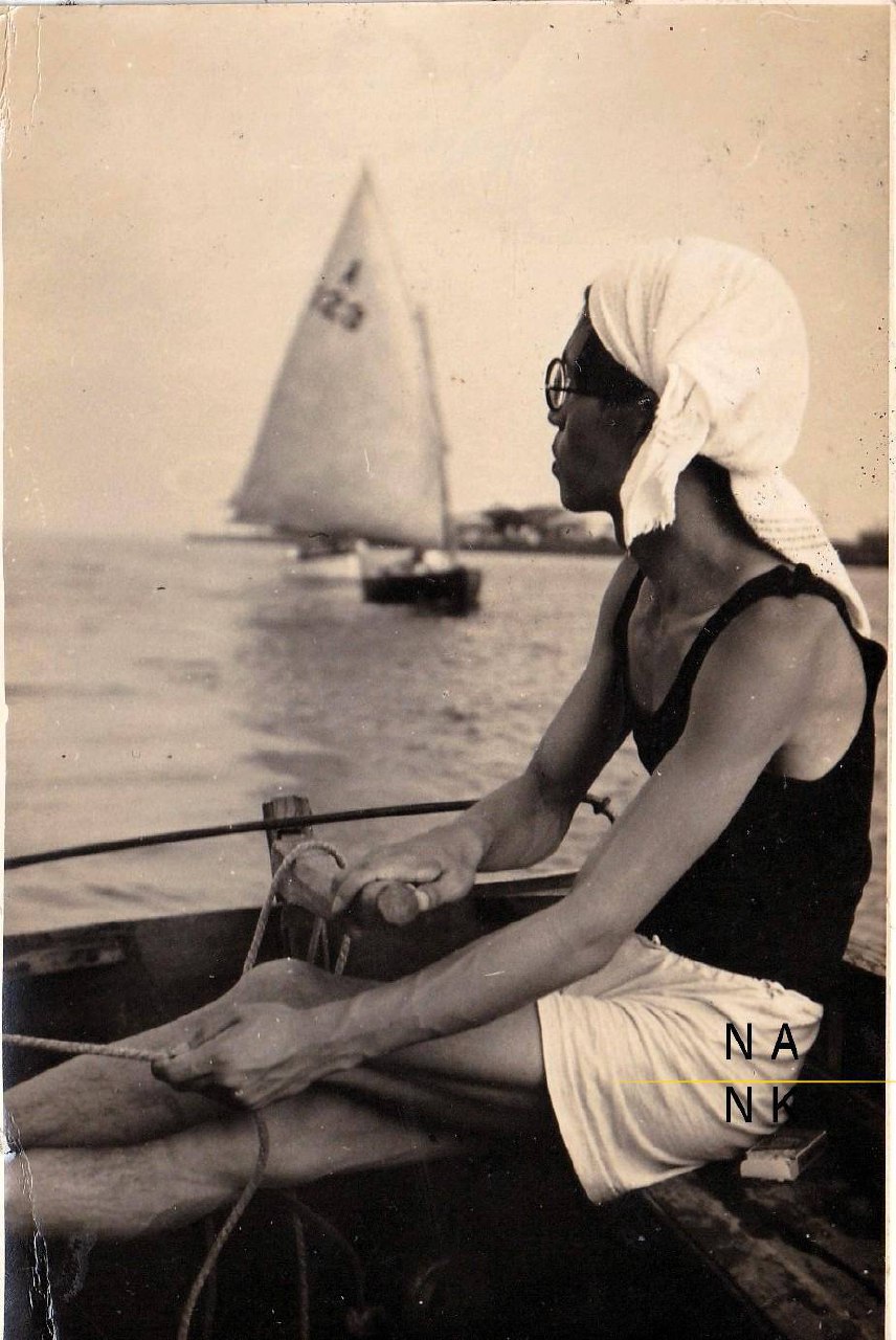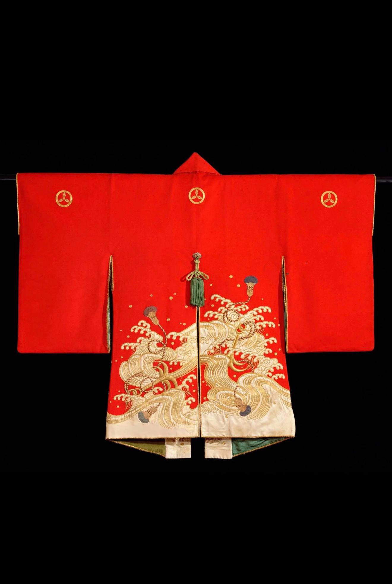Накидка украшена уместными «охлаждающими» водными мотивами — якорями с кистями среди вздымающихся волн.