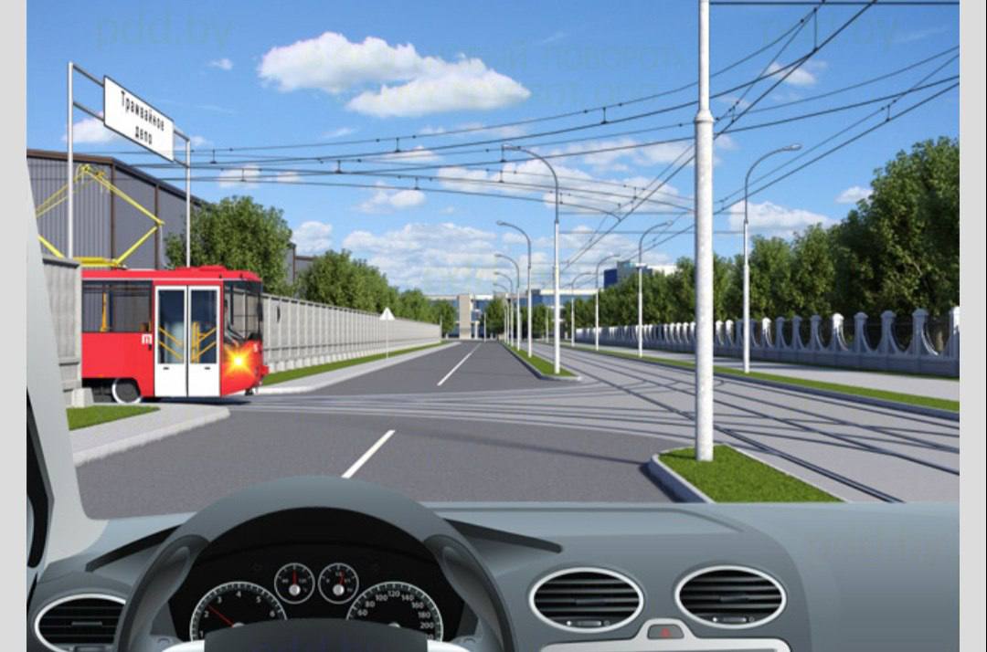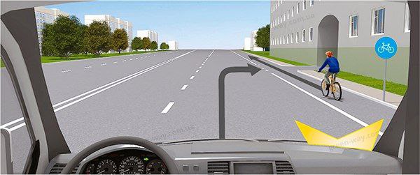 Наш автомобіль повинен дати дорогу сірому і червоному автомобілям, які наближаються до перехрестя по головній дорозі. Білий автомобіль, як і наш, перебуває на другорядній дорозі, тому також повинен дати дорогу сірому та червоному автомобілям, а після їх проїзду буде зобов'язаний дати дорогу і нашому автомобілю, який наближається до перехрестя з правого боку від нього (тобто наш автомобіль буде так званою «перешкодою з правого боку» для білого автомобіля).