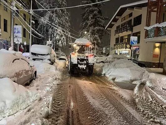 В Сочи после сильных ночных снегопадов продолжается масштабная уборка снега. На улицах курорта работают почти 200 единиц спецтехники.