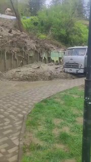 После затяжных дождей грунт на Тепличной в очередной раз «поплыл». Первый крупный пласт рухнул с горы ещё вчера утром — его до сих пор не убрали.