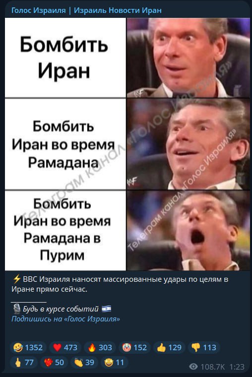 Иран пока побеждает..., на 1-е марта КСИР сообщил о 560 американских военнослужащих убитыми и ранеными. 1-го марта они подбили авианосец «Абрам Линкольн» 4-мя ракетами и он ушёл в Индийский океан на базу США Диего Гарсия для ремонта... в Тель-Авиве уничтожили все знания обороны и разведки израиля, как в июне прошлого года, сбили около десятка самолётов и БПЛА, сгорели база ВМС США в Бахрейне и посольство США в Кувейте, штаб-квартиры моссада и ЦРУ в ОАЭ и Катаре центр ПРО в ОАЭ, в Саудовской Аравии горит и остановился НПЗ Оранко, более 150-ти танкеров стоят на якорях а 3-ри танкера США и Британии подбиты, которые нагло хотели сбежать через Ормузский пролив, цена на нефть и газ подскочила уже на 20% и пойдёт ещё выше..., что для России очень хорошо... и, уже примерились к уничтожению базы ВВС Англии на Кипре, куда сбежал Нетаньяху... и, если долбанут по ней гиперзвуковыми ракетами то там его и похоронят…