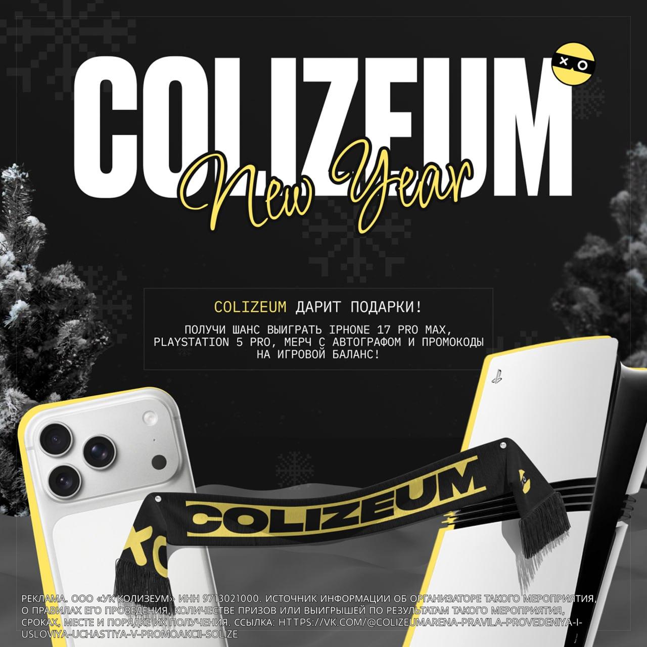 Стартовала акция COLIZEUM New Year 2025, из призов – IPhone 17 Pro Max, PS5 Pro, мерч и куча разных промокодов. Вся инфа здесь – @ColizeumArenaBot.