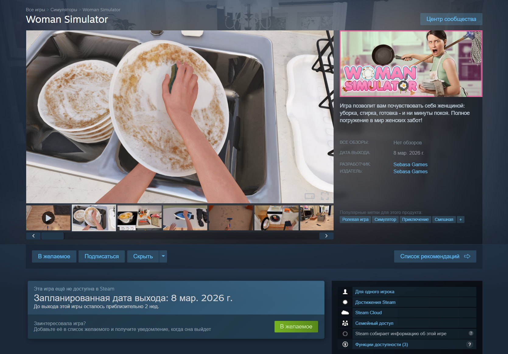 «Симулятор Женщины» получил дату выхода в Steam – игра про бесконечное мытье посуды, глажку носков и чистку толкана выйдет... 8 марта.