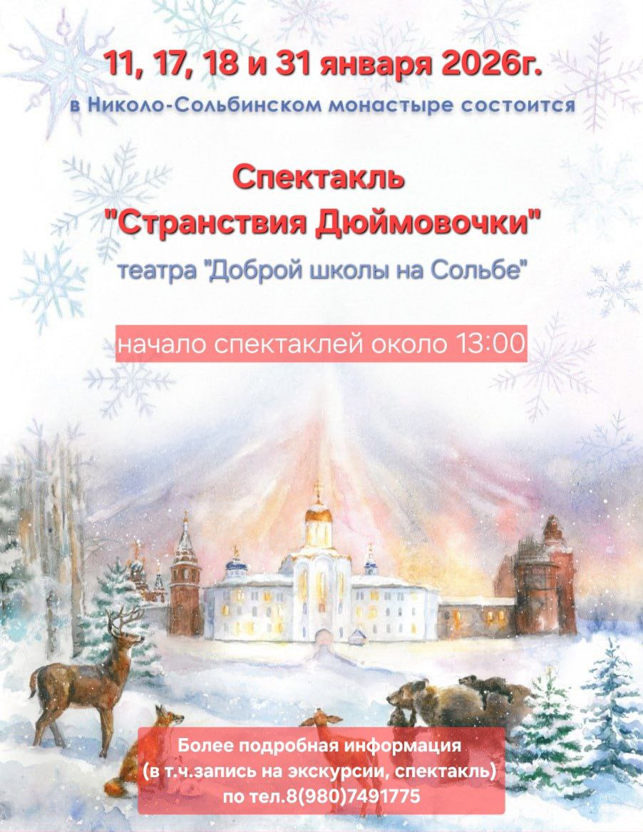 Мы в прошлом году на Крещение попали сюда на экскурсию, которая завершилась просмотром замечательного спектакля театра "Добрая школа на Сольбе". Мы прошлись по всех храмам, узнали много интересного о быте и устройстве монастыря, заглянули в мастерские, где делают потрясающую вышивку, шьют различные костюмы и даже готовят наивкуснейшие кондитерские изделия и булочки.