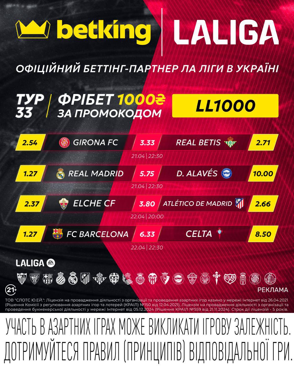 🇪🇸Анонс матчів 33-го туру Ла Ліги від беттінг-партнеру турніру betking 👑
