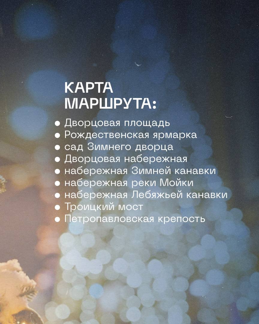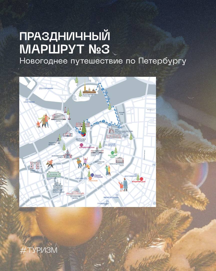 Праздничный пешеходный маршрут №3 проведет вас по саду Зимнего дворца, через набережную Мойки и Троицкий мост, а завершится в Петропавловской крепости. Там в Нарышкином бастионе проходит фестиваль ледовых скульптур «КроншЛёд», у Соборной площади работает новогодняя ярмарка.
