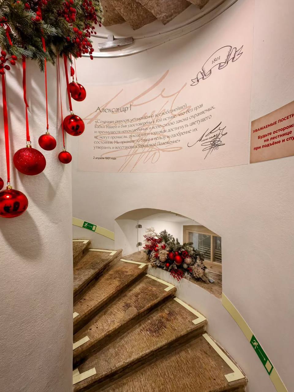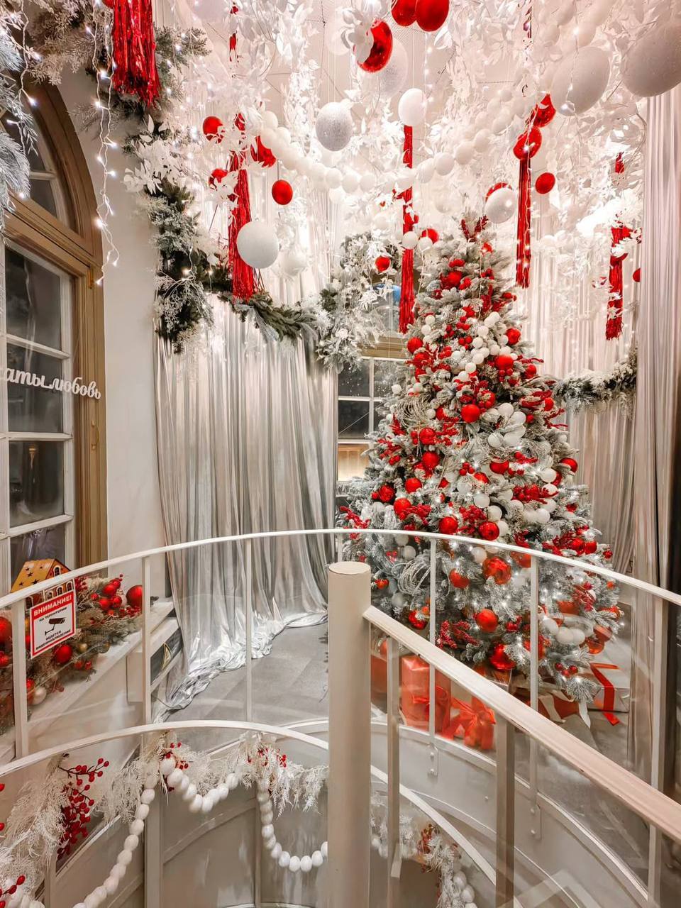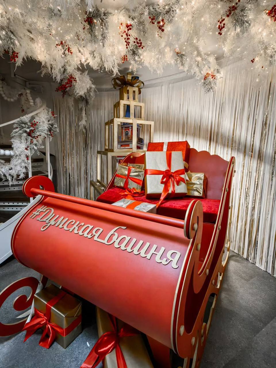 😍 Главную лестницу Думской башни украсили новогодними композициями Вы сможете сфотографироваться с ёлочкой в контрастном красно-белом убранстве и санками с подарками 💫 Питер Daily