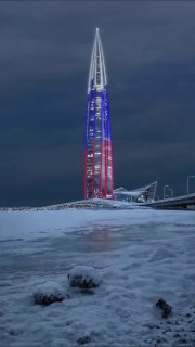 🤩 Праздничная подсветка в честь Дня защитника Отечества засияет сегодня на здании «Лахта Центра»