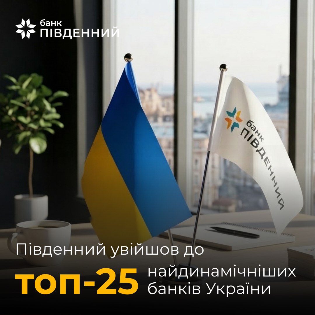 🏆 Банк Південний посів шосте місце у рейтингу «Топ-25 найдинамічніших банків України» за версією видання New Voice та інвестиційної компанії Dragon Capital.