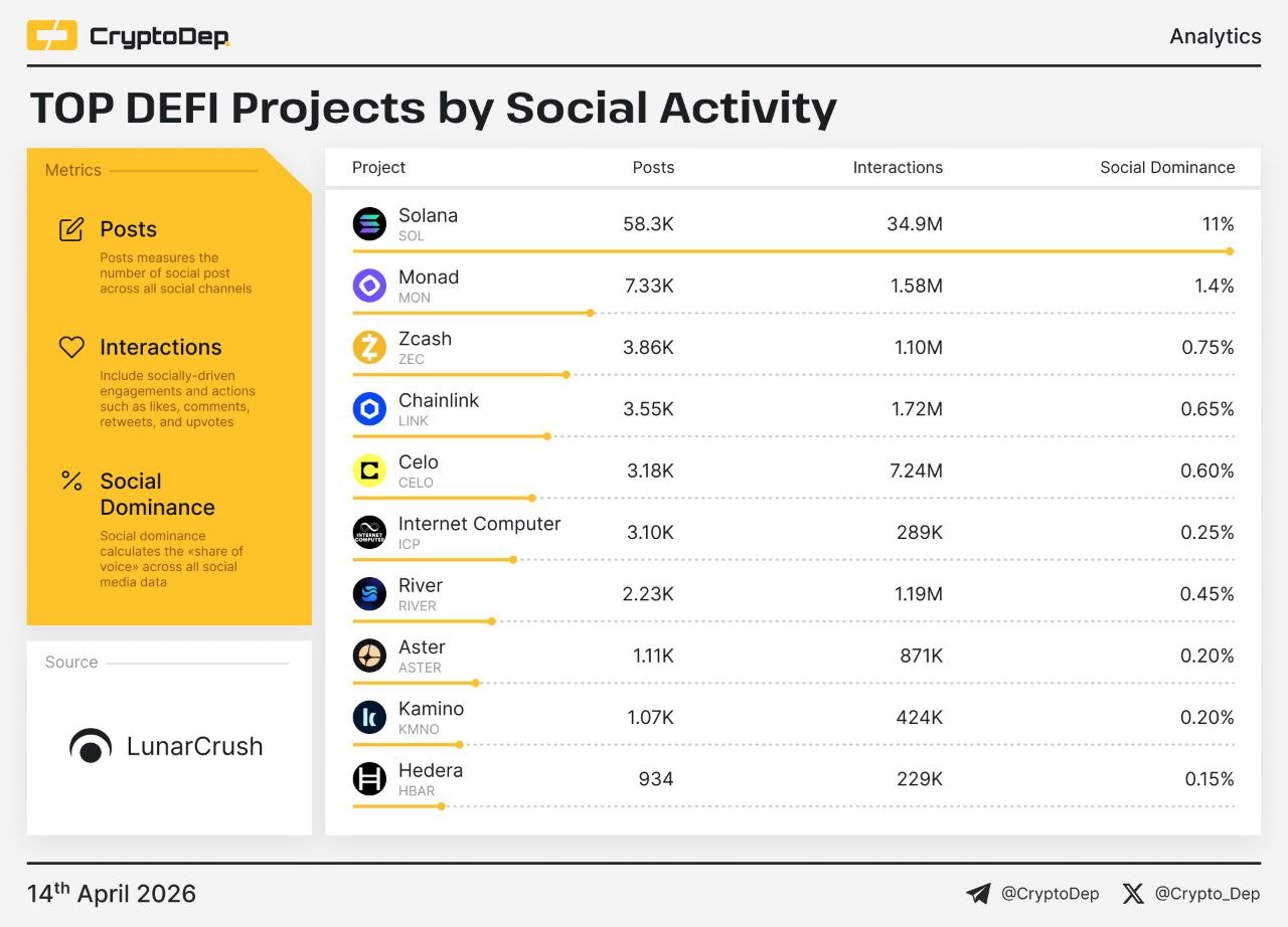 🗣 Лучшие DeFi-проекты по уровню активности в социальных сетях