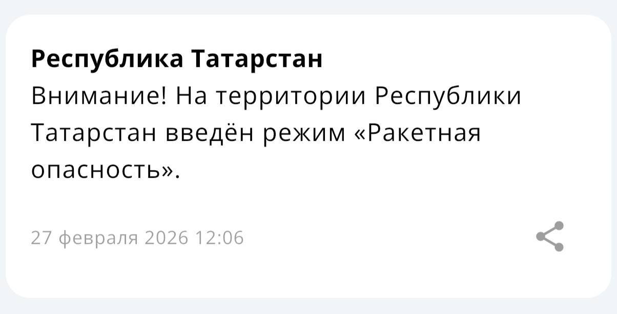 ⚡️ В Татарстане впервые объявили «Ракетную опасность» — МЧС