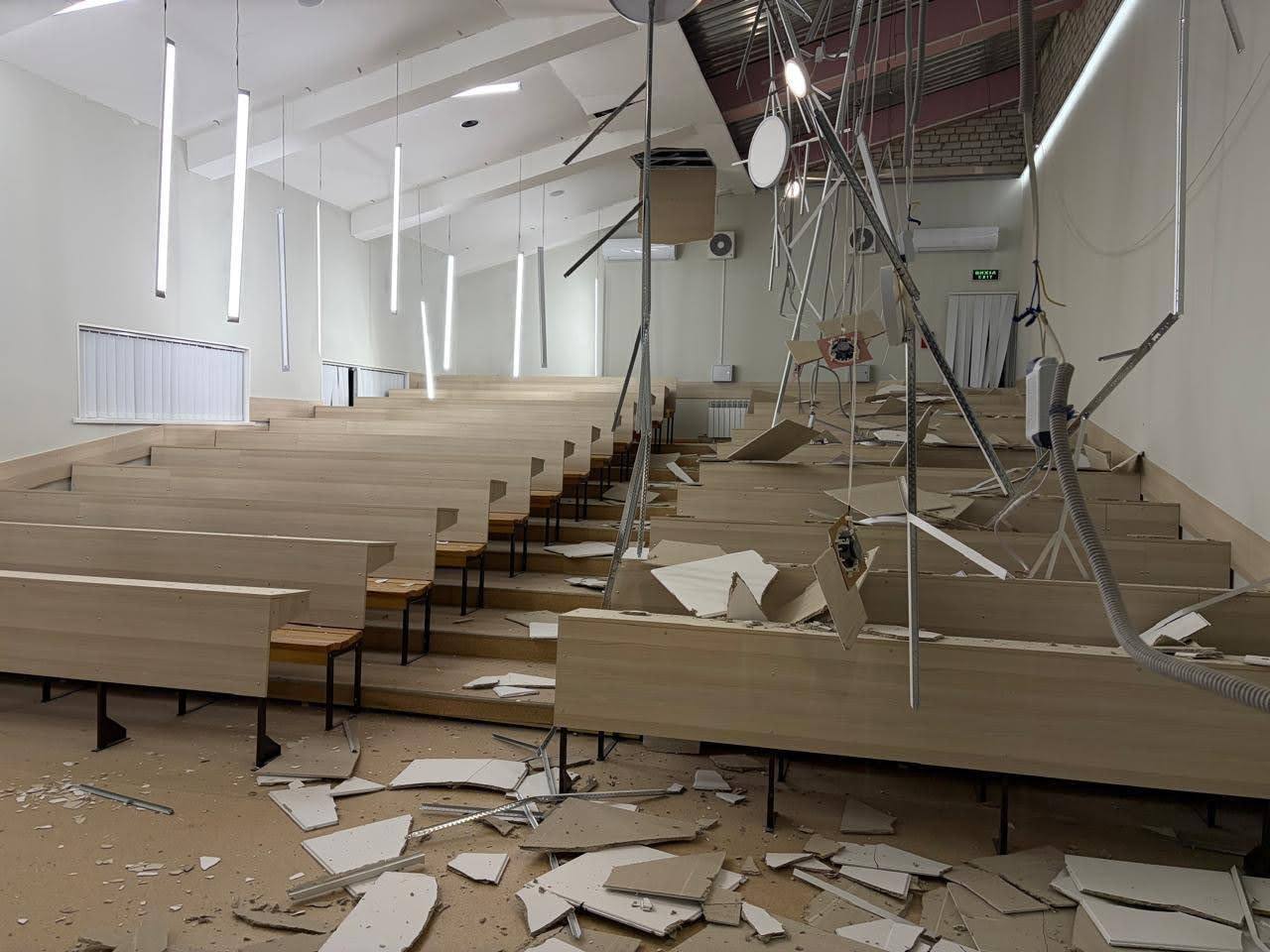 «В епіцентрі терору. Немає вікон, зруйновано аудиторії. Головне — всі живі. Відновимо», — написав ректор