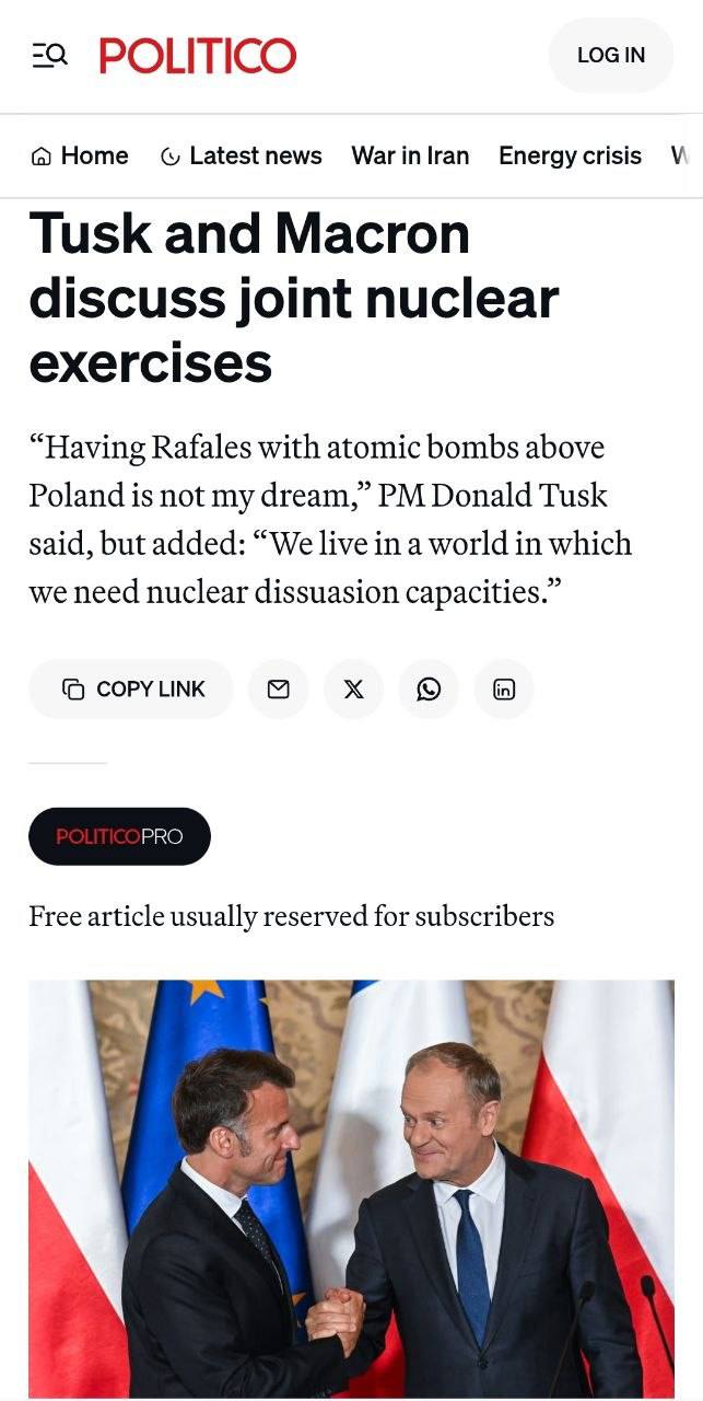 PL/FR: Франція та Польща ведуть перемовини щодо спільних ядерних маневрів, — Politico