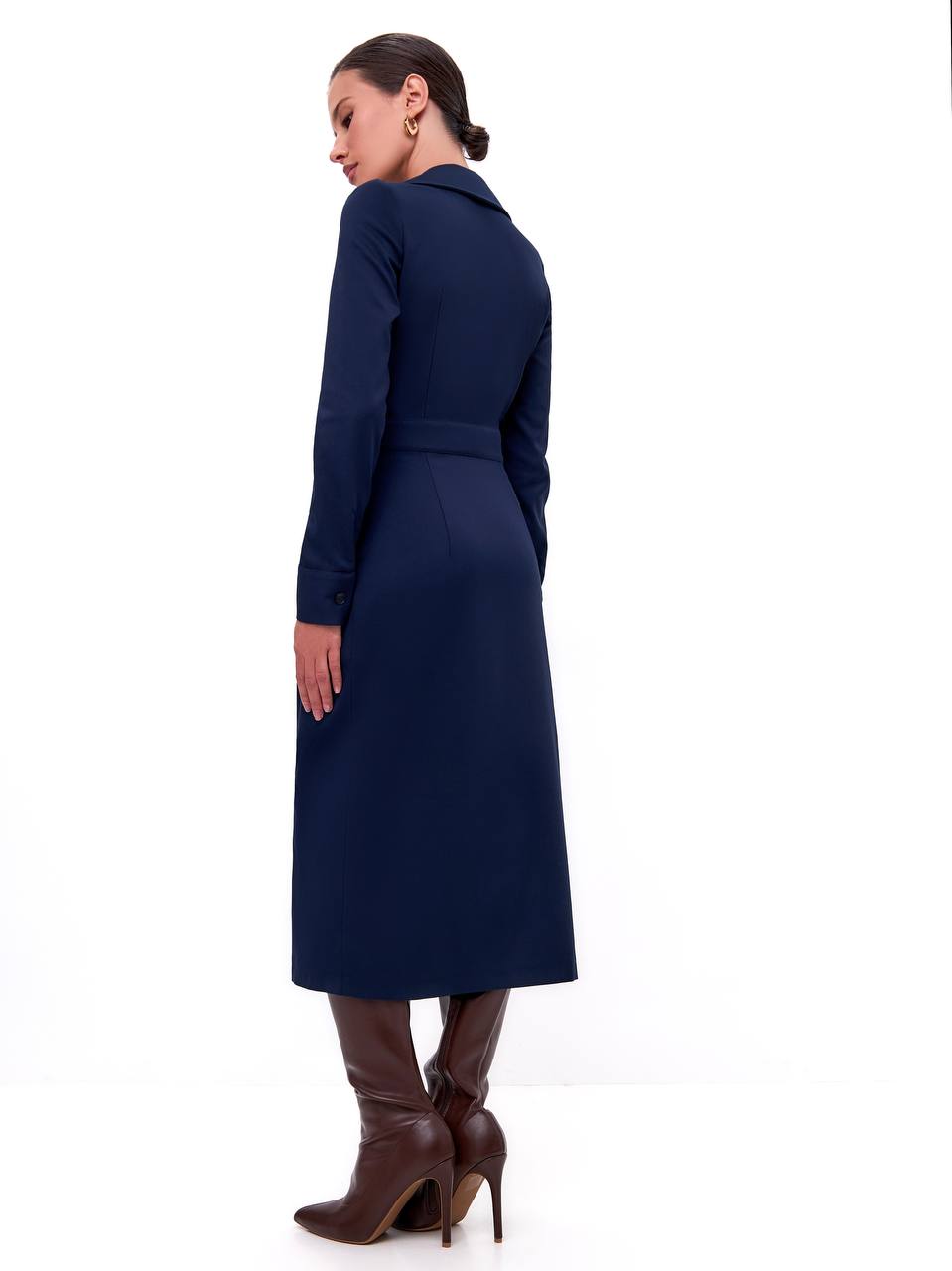 Глубокий оттенок синего подчёркивает уверенность и сдержанность, а строгий силуэт пиджака делает такую модель безупречным выбором для рабочих встреч, офисных будней и деловых мероприятий.