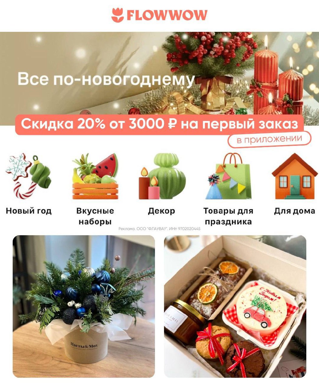 Доставка цветов к нужному времени со скидкой 20% через Flowwow 🌷