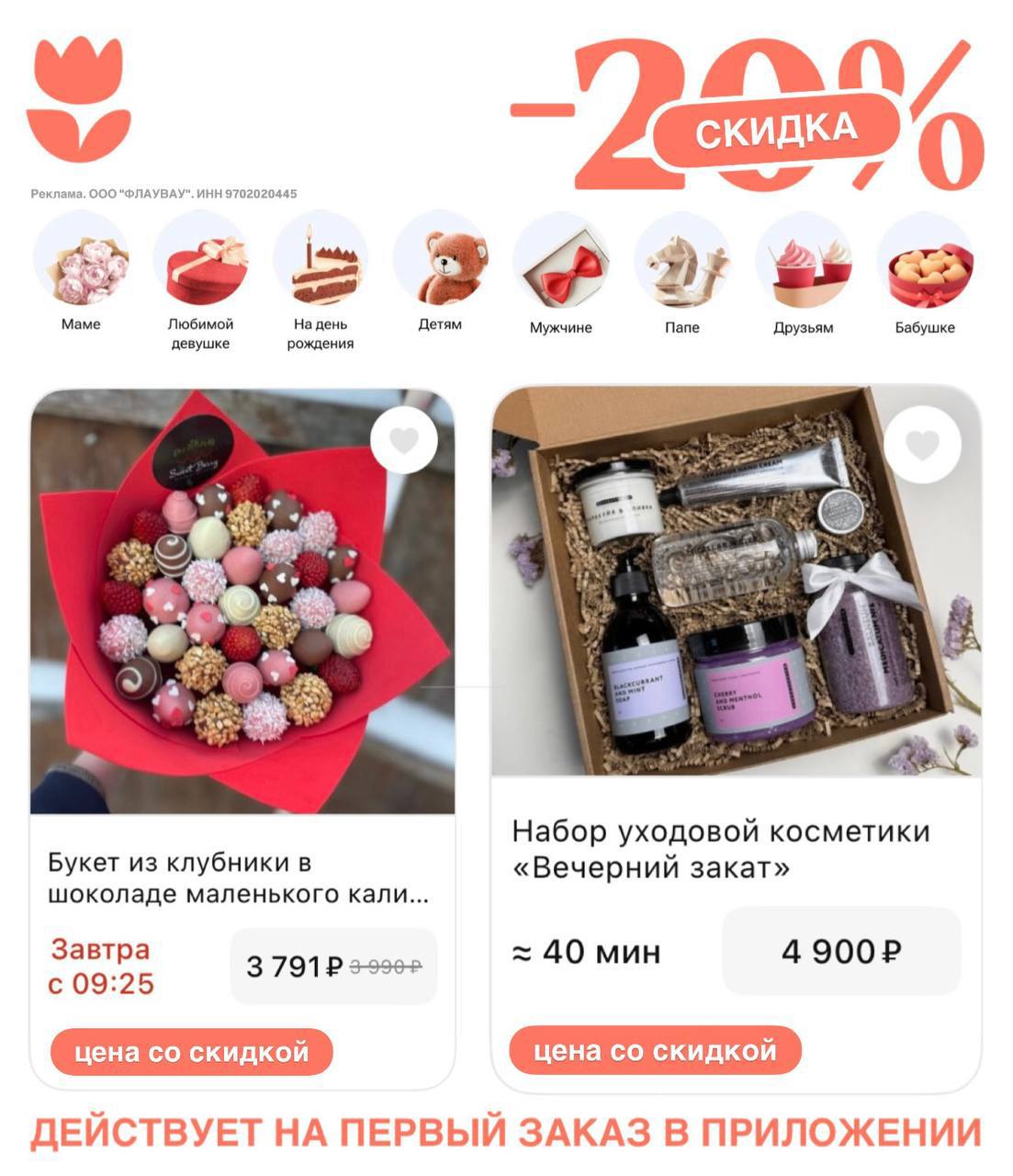 ✔️FREEX20FLW – скидка 20% на первый заказ от 3000₽.