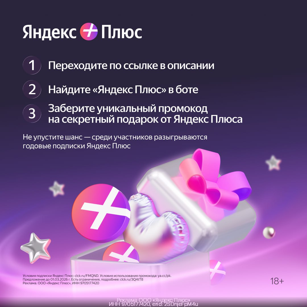 Примени его по ссылке 👈 и участвуй в розыгрыше подарков от Яндекс Плюс
