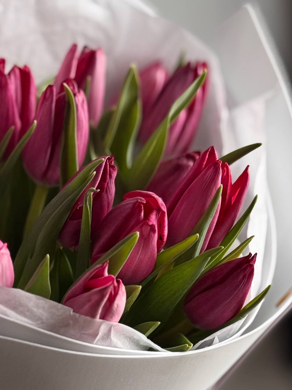 •11 белых, розовых и красных тюльпанов