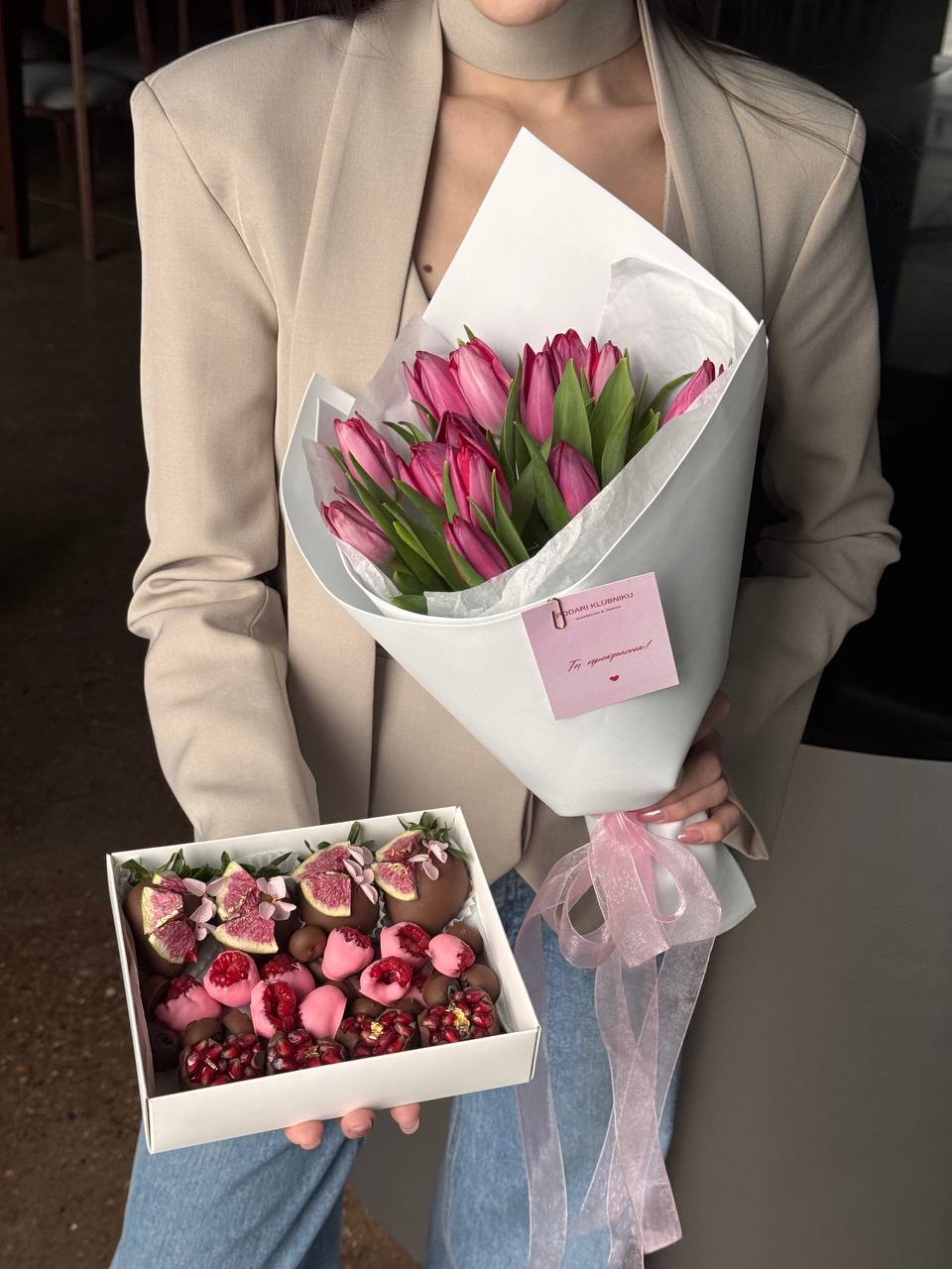 🍓-10% при заказе букета и набора. Комбо-набор «Весенний шарм» со скидкой 7680₽