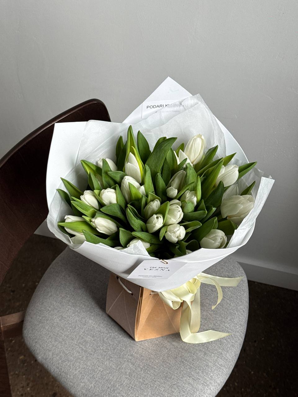 •25 белых тюльпанов