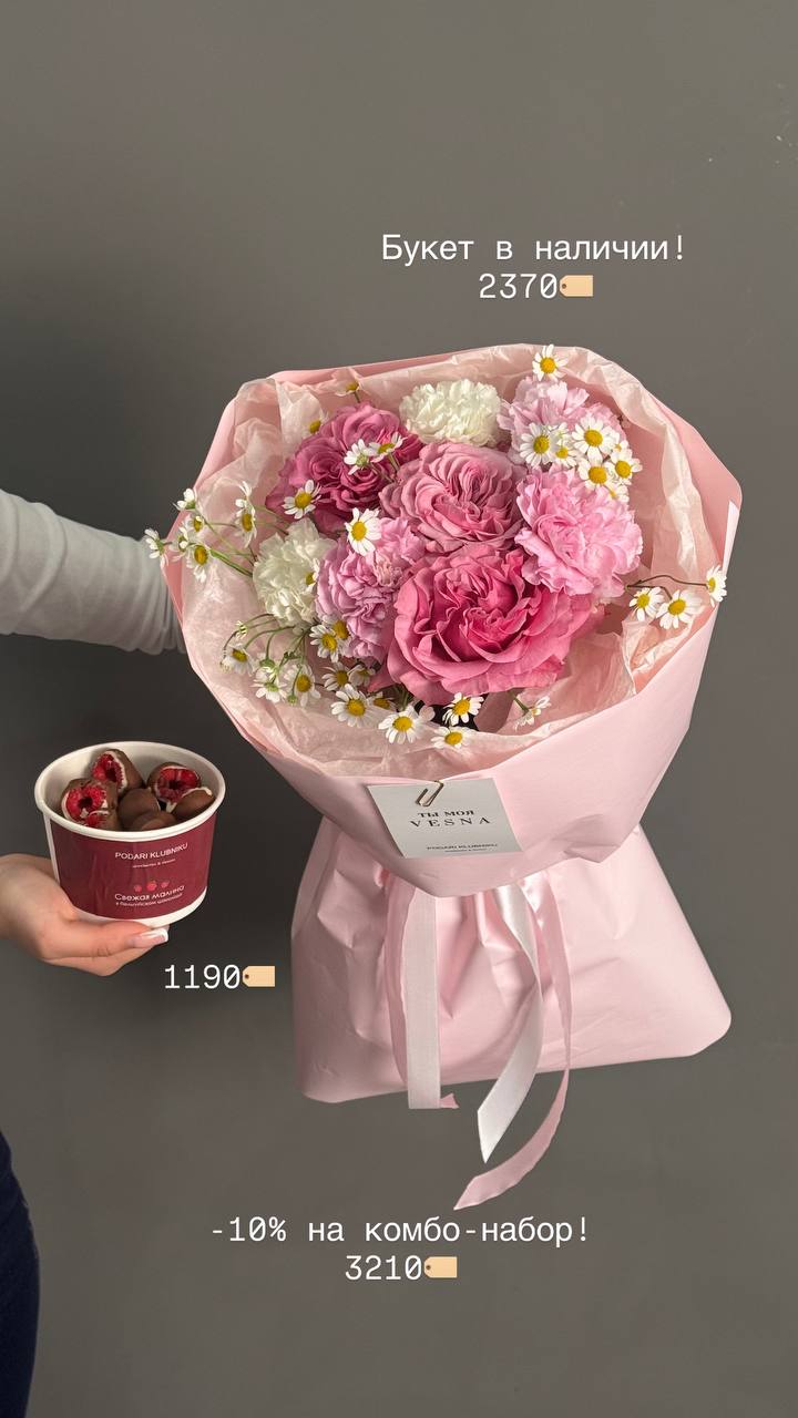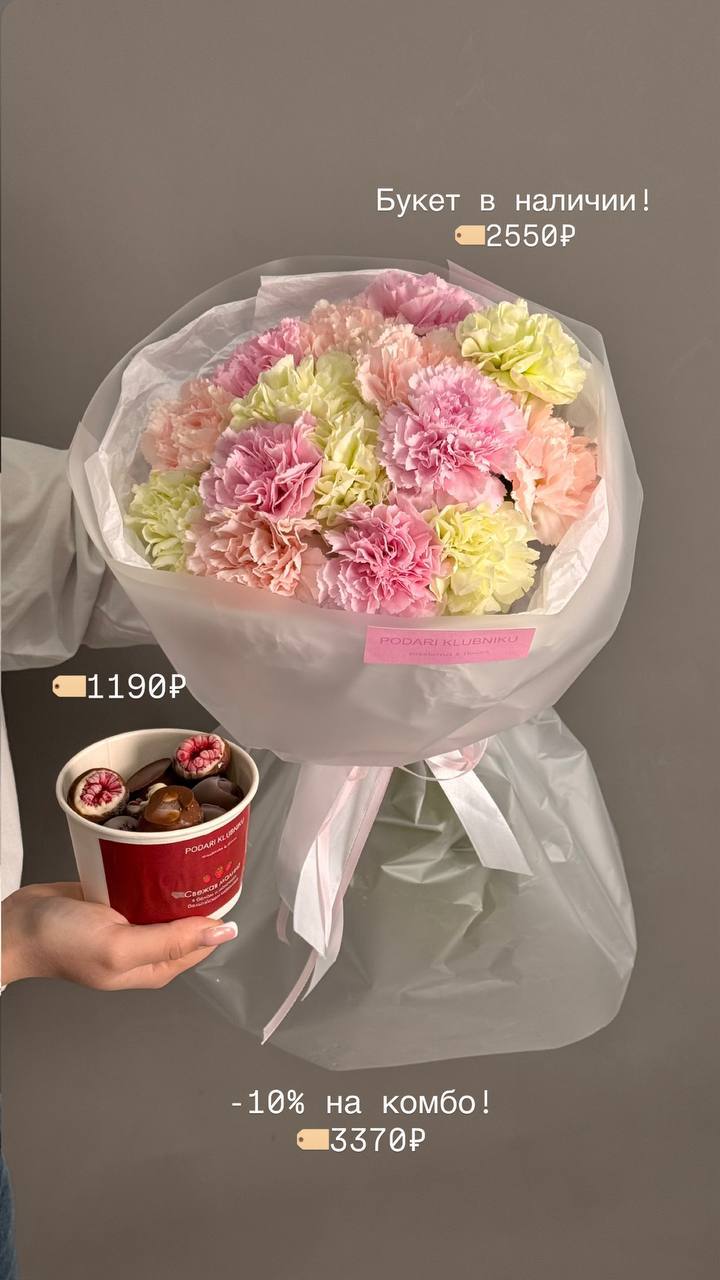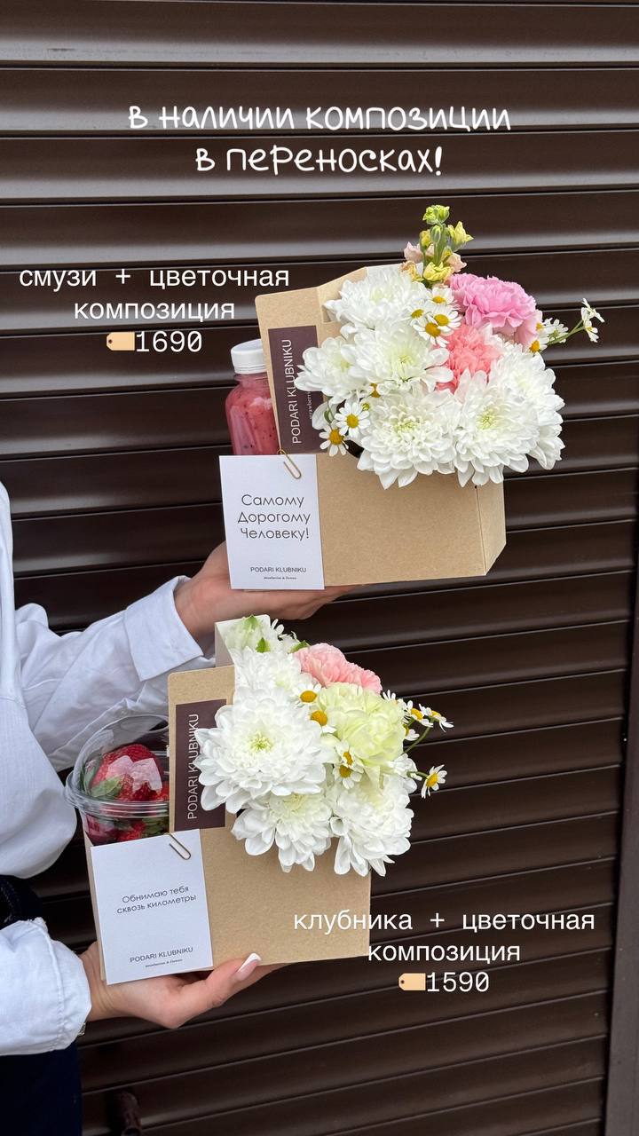 В наличии букеты с цветами со свежей поставки, а также цветочные композиции со смузи и свежей клубникой 🍓
