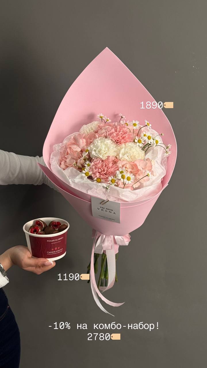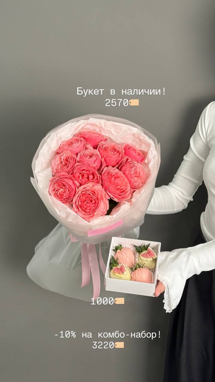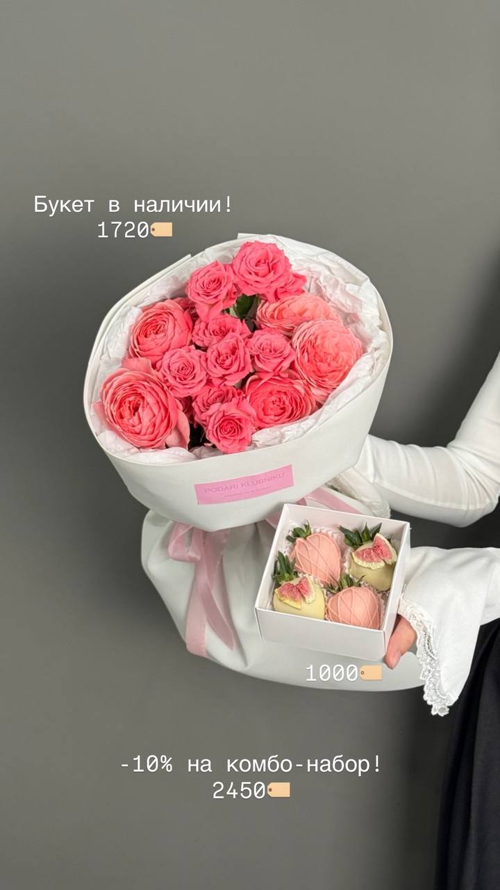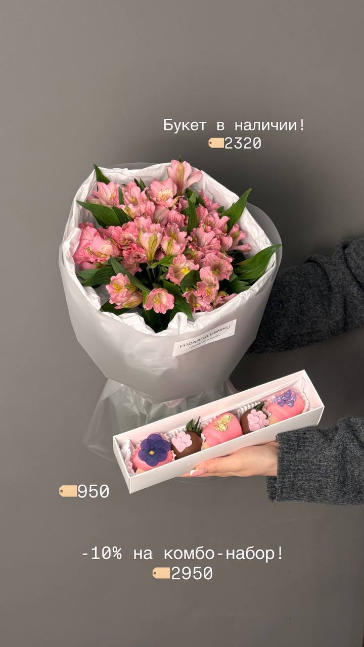 В наличии букеты с цветами со свежей поставки, а также цветочные композиции со смузи и свежей клубникой 🍓