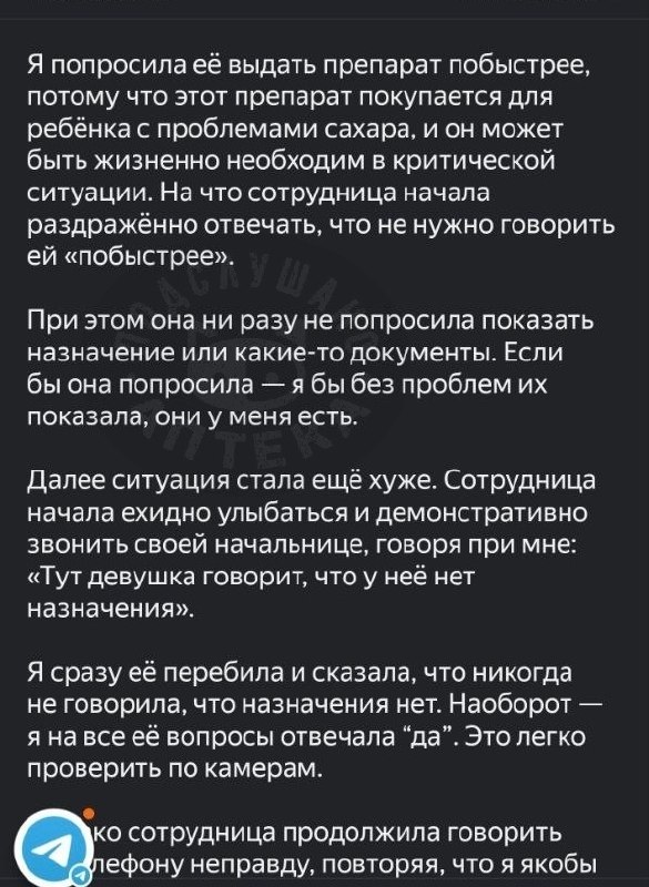 И вот на тебе!😡😡. При этом у нас камеры вокруг и голоса записывают и видео. Зав на следующий день пришла посмотрела, ей надо было позвонить этой девушке и попросить прощения, но после просмотра, она отправила видео с комментариями, Что ее сотрудник ничего не нарушила, кроме, как мой ответ на ее возмущения, что не «надо меня торопить», и «я не обслуживающий персонал»