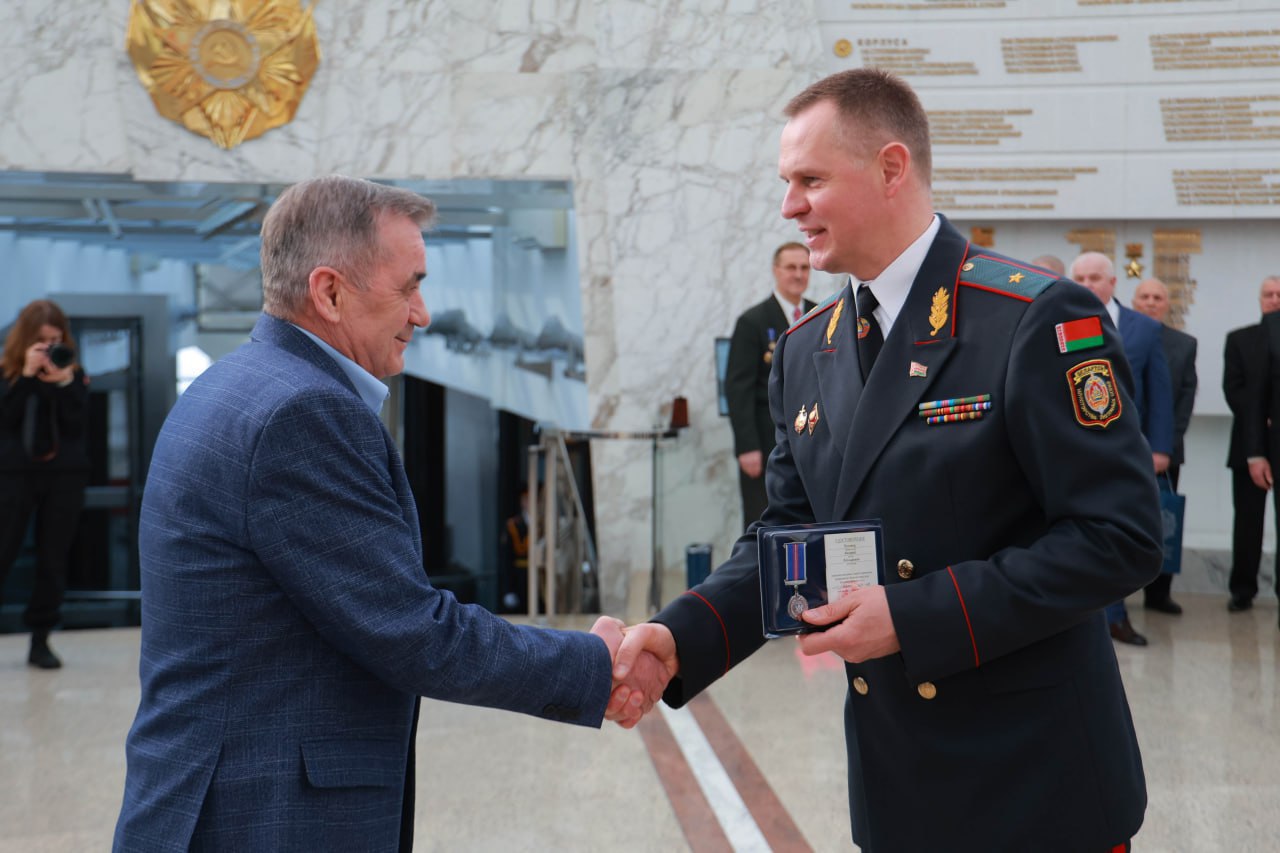 🎖Михаил Гриб вручил нагрудные знаки МВД, грамоты и благодарности, погоны в связи с присвоением первых и очередных специальных званий, а также ценные подарки сотрудникам минской милиции и ветеранам.