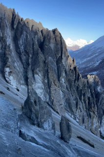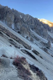 Дорога, как на Марсе, к базовому лагерю Тиличо 4000м. Идти там было нереально страшно, были уже уставшие под вечер, тропинка узкая, а если случайно скатиться вниз, остались бы только зубы. Коленки подкашивались, когда смотрела на обрыв!