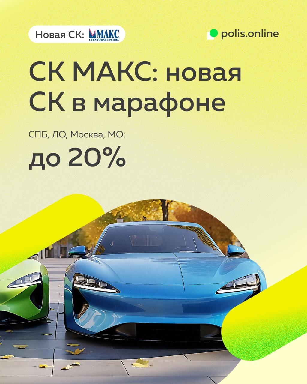 СК МАКС: МСК, МО, СПб и ЛО до 20% 💬 новая компания в марафоне