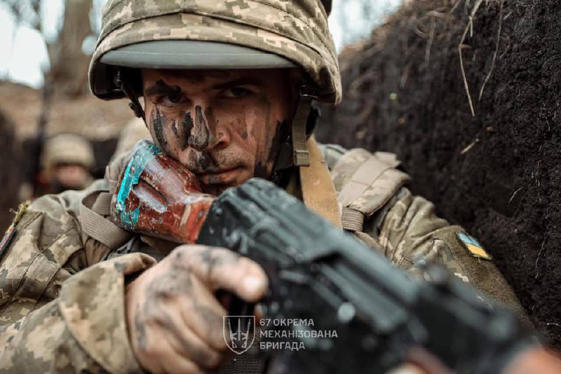 Піхота 67 ОМБр втискається в рідну землю, штурми ворога не змушують її зробити крок назад, тільки вперед, вгризаючись в кожен клаптик чорнозему. Тісні окопи, глибокі нори, де холод і бруд, де сама Українська земля обіймає та дає сил, де тримає плече побратима.