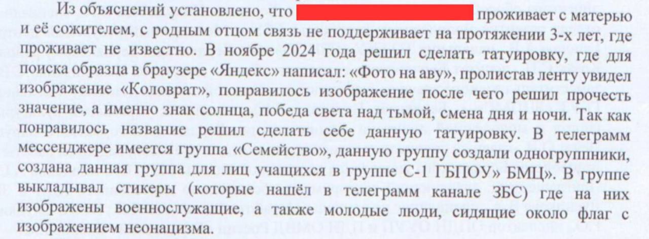 При цьому ситуація, яка склалася у родині одного з учнів БЦПТО, показує реальну мету окупаційних органів: у квітні 2025 року адміністрація Бердянська визнала родину учня соціально-небезпечним випадком через «неонацистські» татуювання на дитині та «стикери в Telegram». Ці елементи стали підставою для звинувачень у неналежному вихованні, хоча сам учень був дисциплінованим і не пропускав занять.