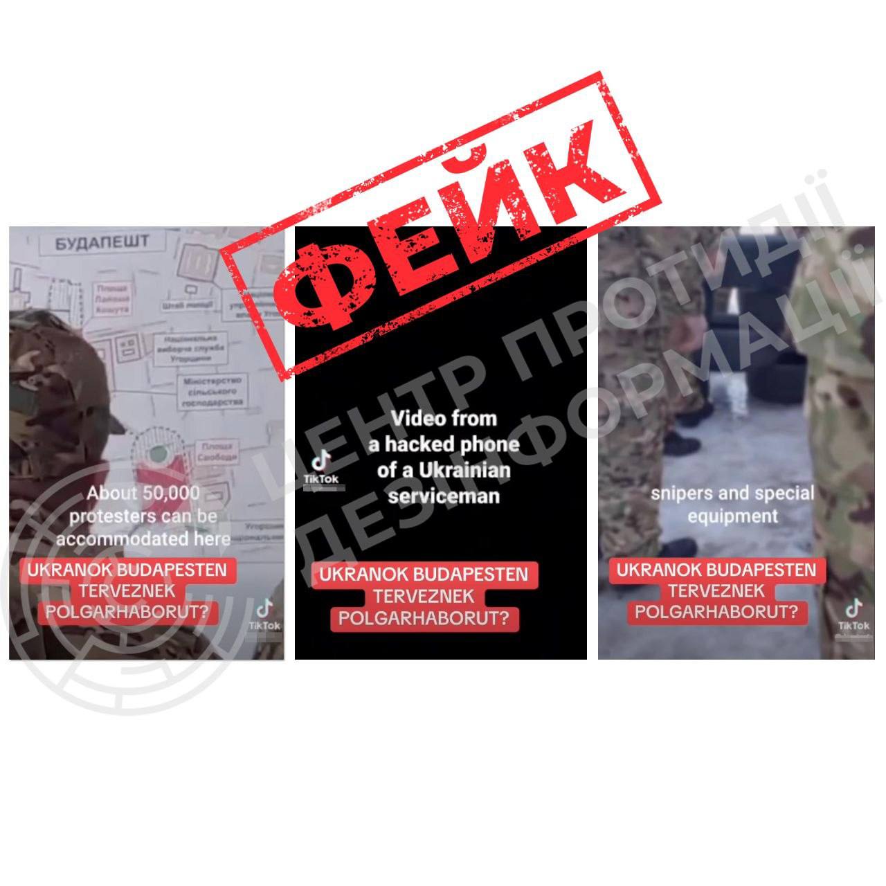 ✅ Насправді це відео має ознаки постановки. Особи в кадрі, які «планують Майдан у Будапешті», одягнені у військову форму без знаків розрізнення — жодної конспірації, адже військова форма використана виключно для психологічного привернення уваги. На кадрах не видно облич чи будь-яких деталей, за допомогою яких можна було б ідентифікувати людей чи місце зйомки. Люди на відео говорять українською, але контекст і поведінка виглядають неприродно та штучно. Додає «театральності» й велика карта на стіні, на якій чітко видно напис «Будапешт». росія щомісяця створює низку подібних відео для дискредитації українських військових, цим займаються агенції та театральні студії, які працюють з міноборони ворога.