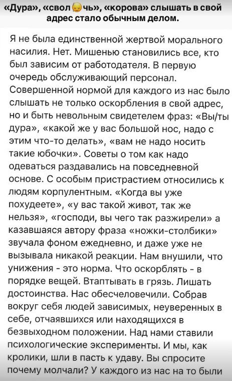 С такими обвинениями в адрес Ренаты выступила ее бывшая ассистентка Наталья Максимова. По ее словам, Рената регулярно позволяла себе лишнее по отношению к сотрудникам: оскорбляла их, унижала, могла публично пройтись по внешности, высмеять лишний вес и другие черты, которые ей могли не понравиться.
