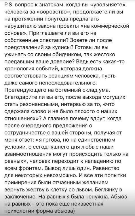 Наталья написала текст с обвинениями после того, как один бренд сначала позвал ее на показ, а потом слился. Она убеждена, что к этой истории приложила руку сама Литвинова, которая ранее угрожала уничтожением карьеры всем, кто решится работать с Максимовой.
