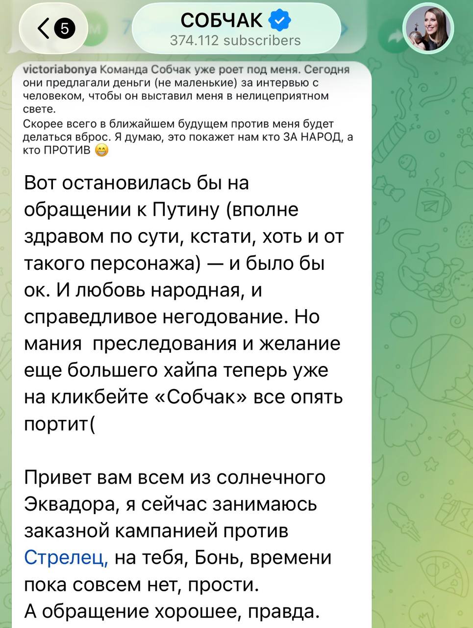 ⏪мания преследования и желание еще большего хайпа теперь уже на кликбейте «Собчак» все опять портит(