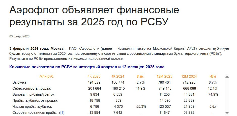 Продажи в 2025-м принесли "Аэрофлоту" убыток, уйдя в минус почти на 14,6 млрд руб. против 23,7 млрд руб. прибыли годом ранее.