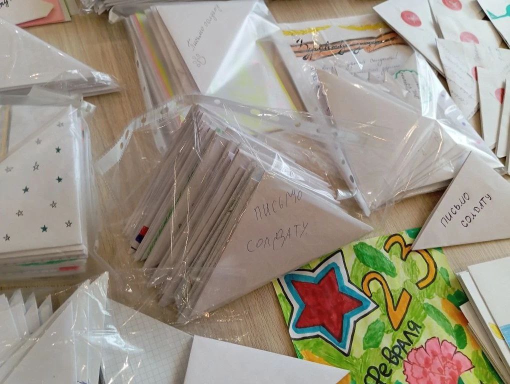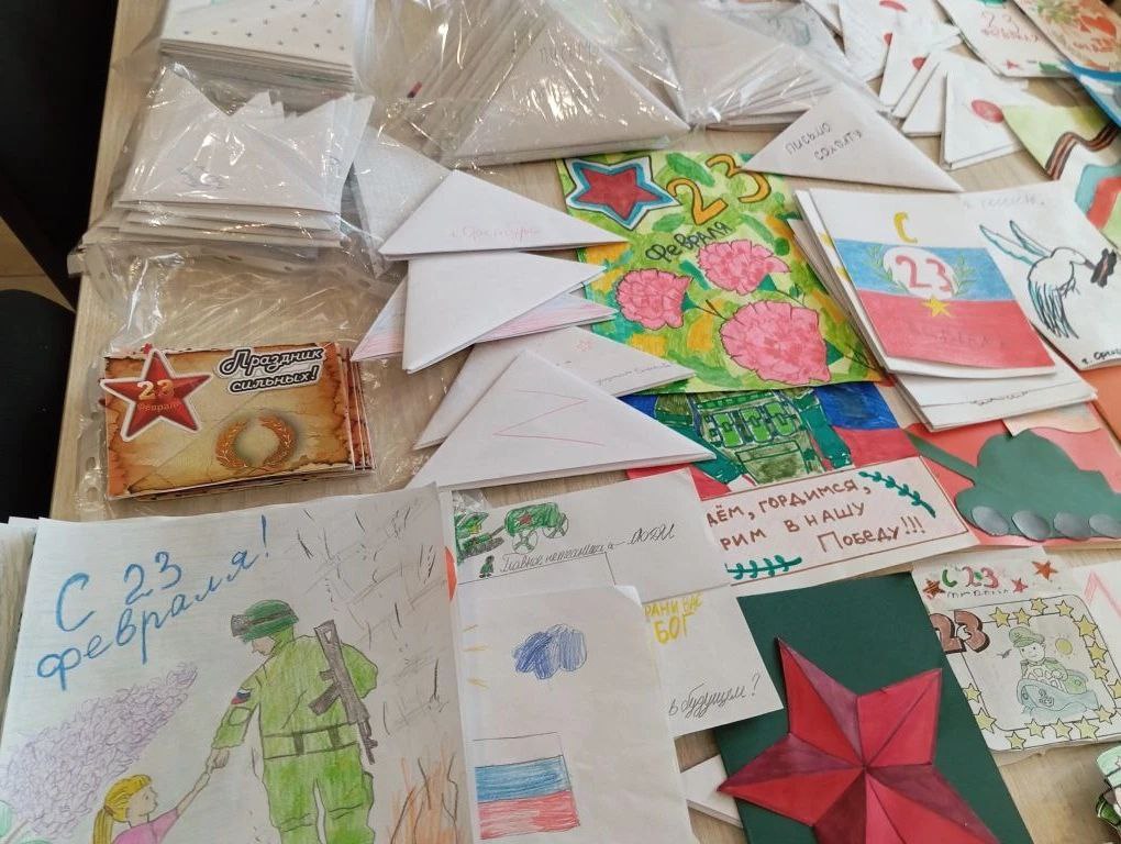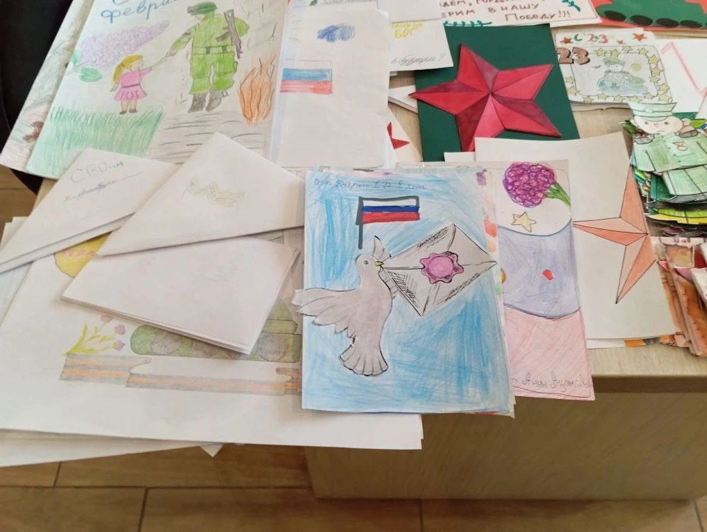 Сформирована посылка с письмами от детей, студентов и ветеранов, рисунками, созданными воспитанниками детских садов и школьниками, поделками ручной работы и необходимыми вещами, которые помогут военнослужащим в повседневной жизни. Завтра гуманитарный груз отправится в зону СВО.