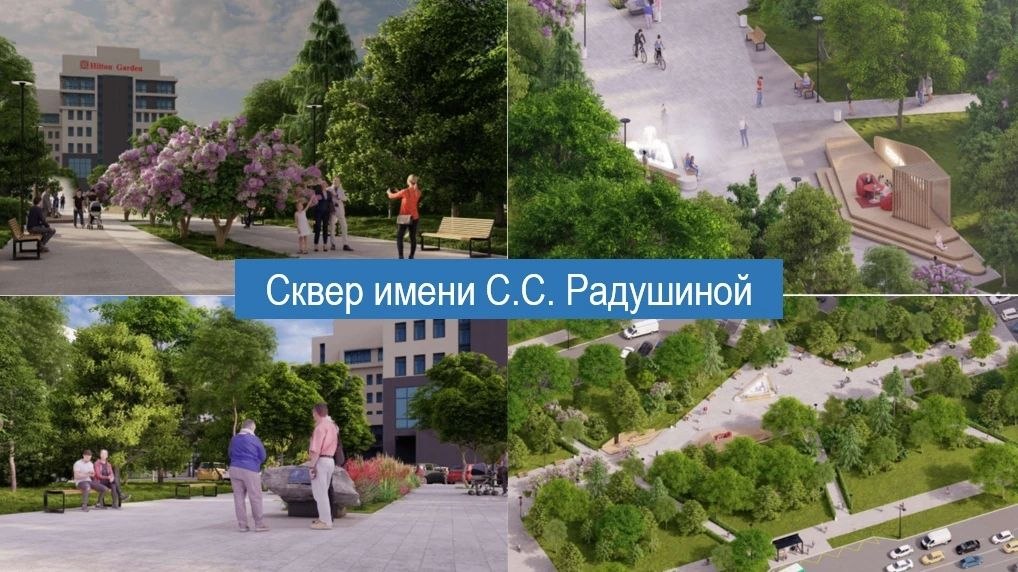 К благоустройству сквера приступили в 2025 году. В прошлом году здесь установили новое освещение, выложили тротуарные дорожки гранитными плитами. В зоне отдыха появились новые скамейки, а для велосипедистов оборудовали парковки изменился ландшафт сквера – здесь высадили яблони, робинии, клены, черемухи, ивы, туи и газон. В апреле в сквере начал работу цветодинамический фонтан.