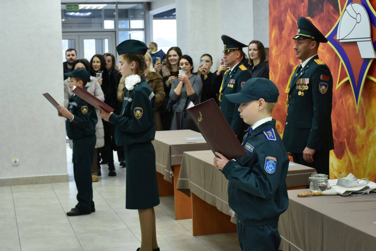 39 учащихся профильных классов МЧС из школ д. Вистычи и Тельмы-1 дали торжественное обещание: быть честными, добросовестными и достойными гражданами своей страны.